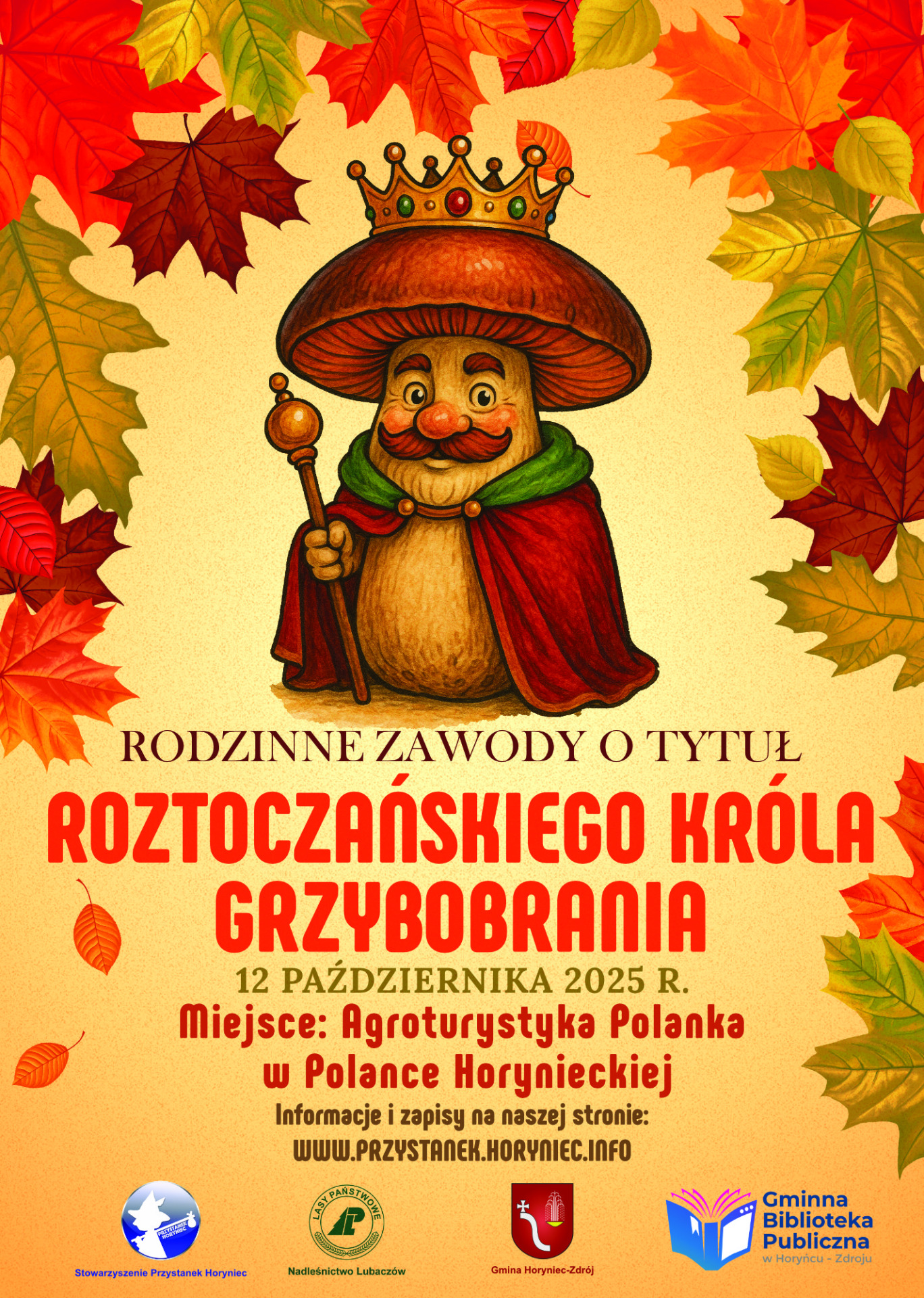 Już 12 października 2025 r. spotkamy się w sercu roztoczańskich lasów, aby po raz trzeci wyłonić Króla (lub Królową!) Grzybobrania!