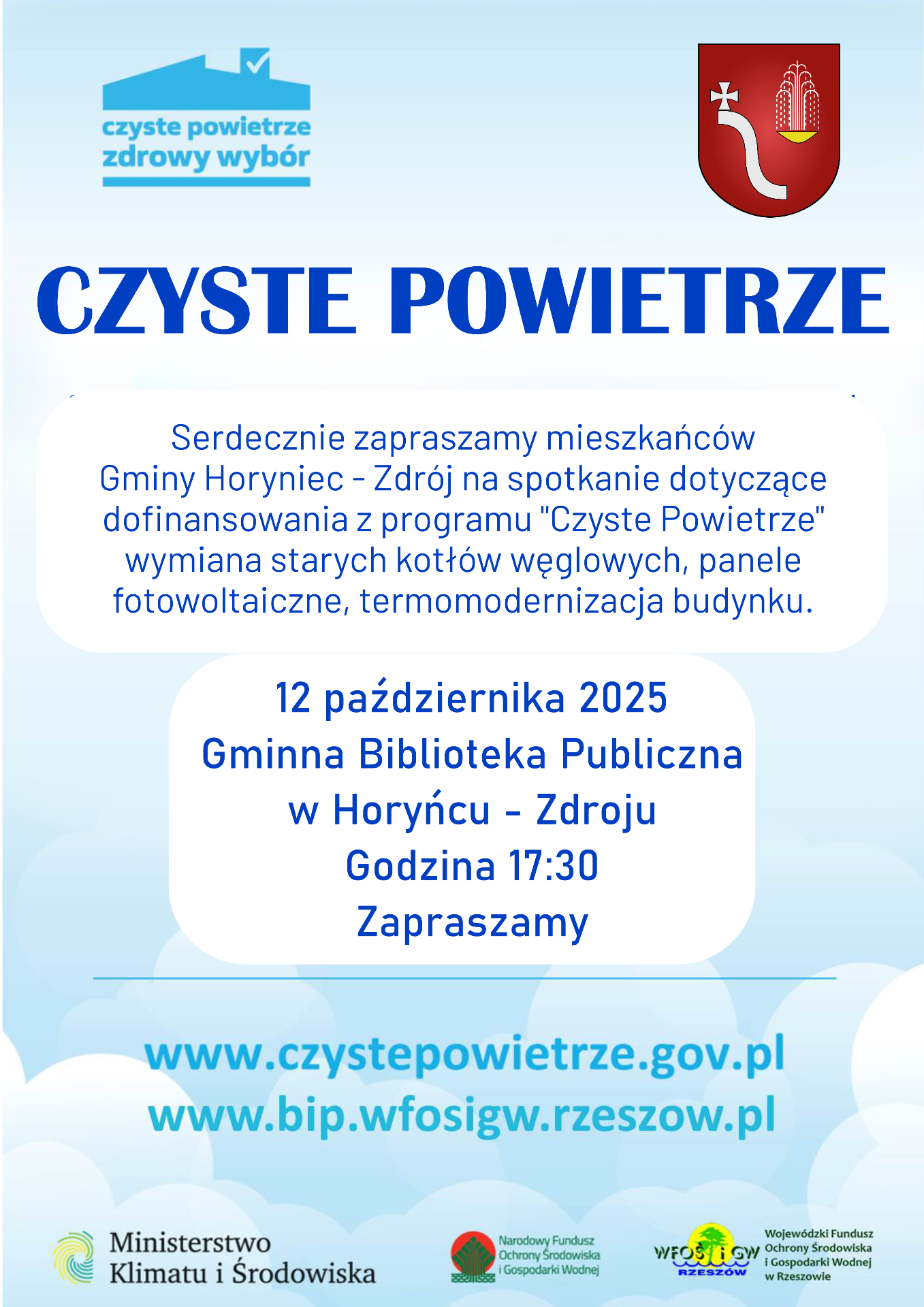 Zaproszenie na spotkanie dot. Programu "Czyste Powietrze"