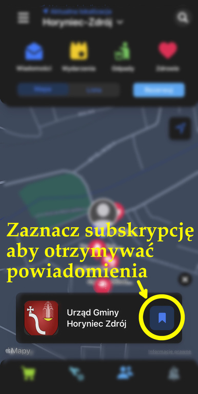 Aby otrzymywać powiadomienia musicie kliknąć w aplikacji przycisk subskrybuj przy każdej z jednostek organizacyjnych znajdujących się na mapie (Urząd Gminy, Szkoła Podstawowa, Gminny Ośrodek Kultury, Gminna Biblioteka Publiczna, Gminny Ośrodek Pomocy Społecznej).